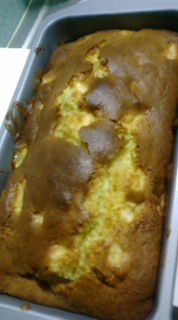 で、これはホットケーキミックスを使って作ったりんご入りパウンドケーキ↓