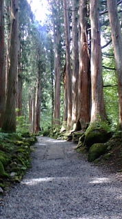 次は車でもう少し上って戸隠神社奥社へ。ここは森に囲まれた片道約2キロの参道をひたすら歩いて社へ向かわなければならない。参道の奥には二つの社、天岩戸の岩を投げた天手力雄命(あめのたじからおのみこと)を祀る「奥社」と戸隠の地主神である九頭龍大神(くずりゅうのおおかみ)が祀られている「九頭龍社」がある。