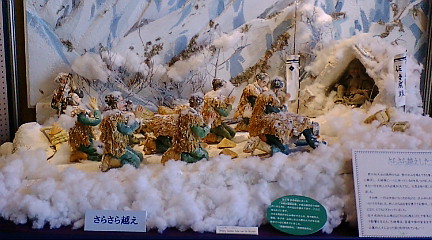 これは佐々成政の雪山越えにまつわる民話の一シーン。ただジオラマを飾ってあるだけでなく、ちゃんとキャプション的なものもあった。