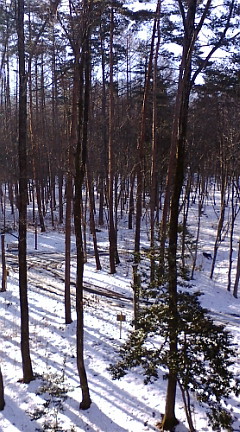 平地はそうでもなかったんだが、山の方は流石に雪が積もってた。園内はこんな感じ↓