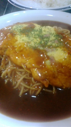 これは今日の昼に食べたあんかけオムレツパスタ。