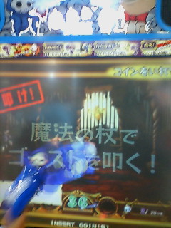 これは杖型コントローラーで画面をたたいたり、引っ張ったりしながらゴーストをやっつけるゲームです。